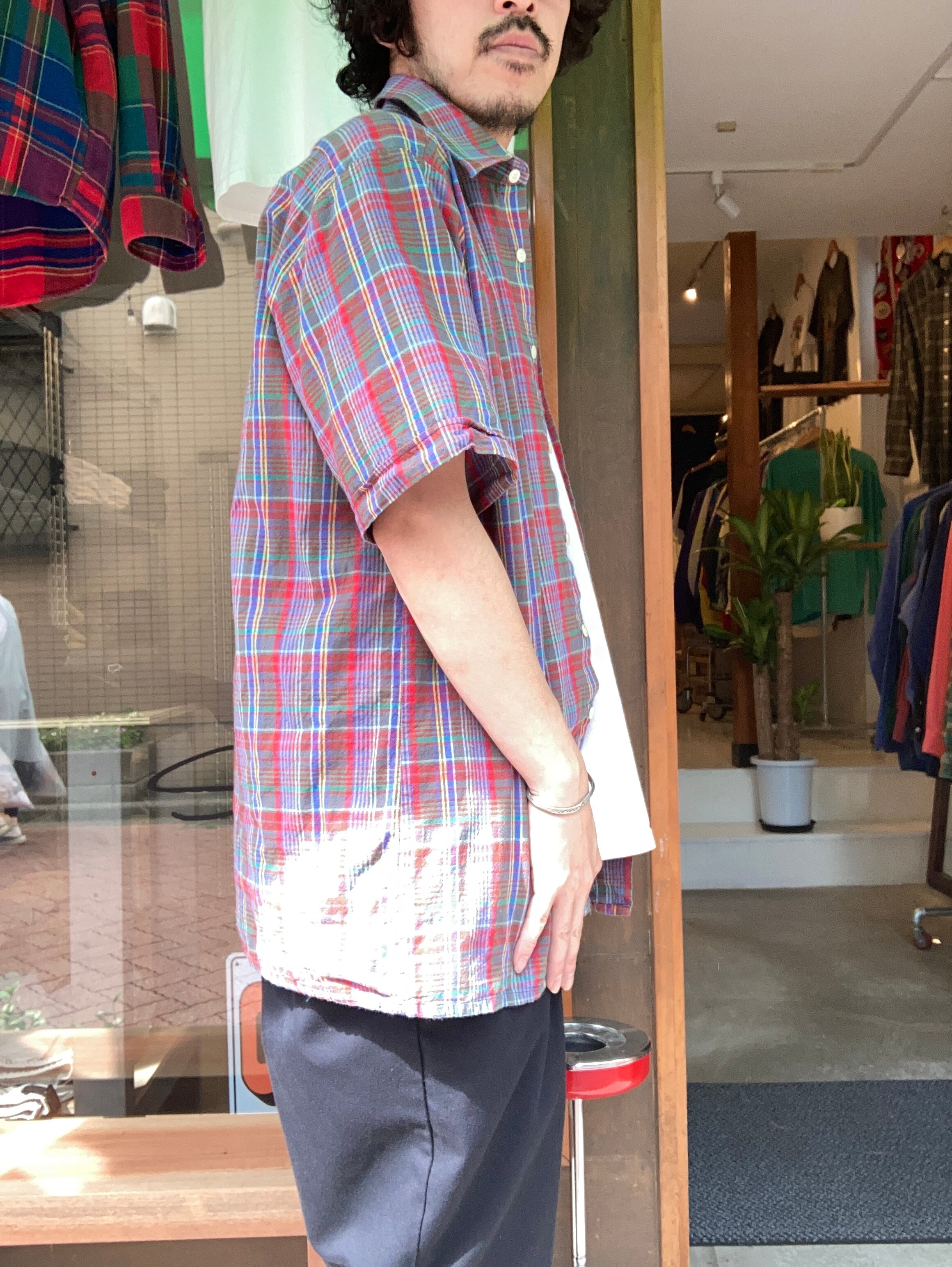 old checked used s/s shirt 古着 ショートスリーブ シャツ