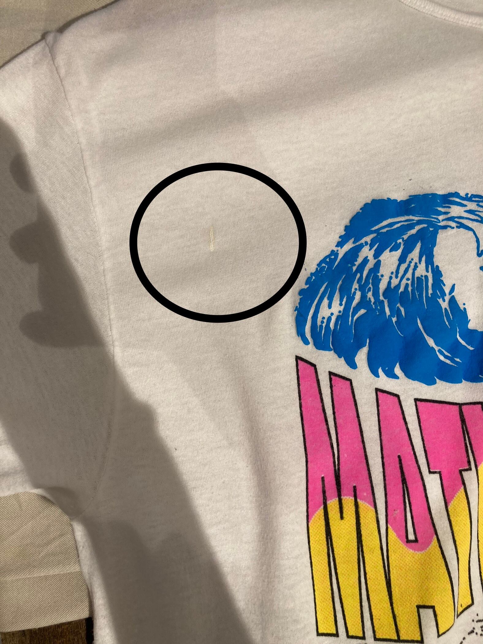 →Condition 右肩部分にちいさなペンキ跡有。右プリント部分に小さな穴有。